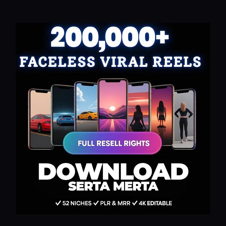 ✔️ Termasuk 200,000+ video faceless & 375+ hook video pendek